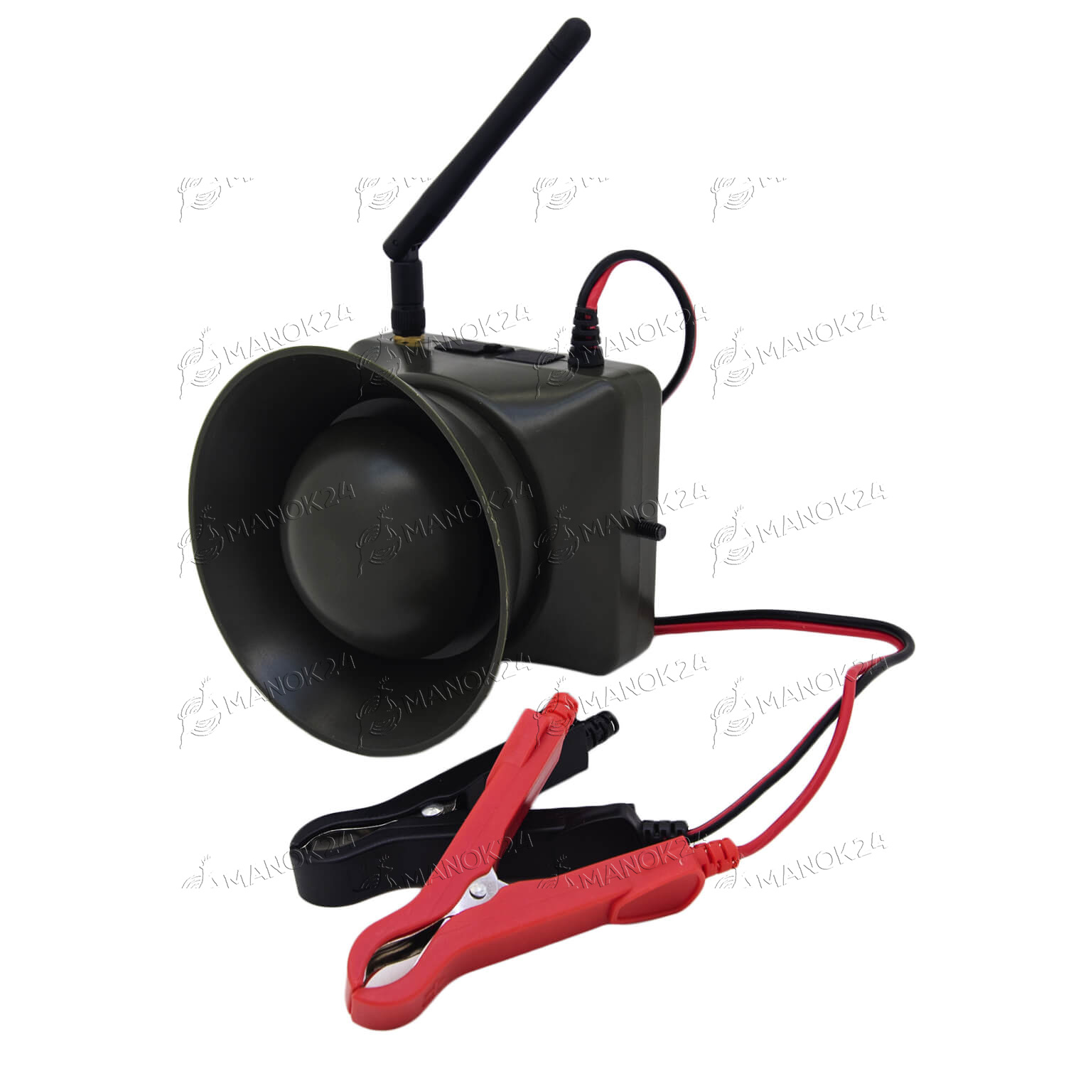 Электронный манок выполнен в одном корпусе с водонепроницаемым динамиком. Манок содержит до 210 голосов различных животных и птиц. Мощность усилителя до 60 Вт. Манок позволяет подключать дополнительный динамик. Лицевая панель прибора оборудована кнопками управления и ЖК дисплеем, на котором отображаются действующие настройки прибора. Встроенный таймер позволяет настраивать воспроизведение любого голоса из набора в любое время и в любую дату. Питается манок от внешнего аккумулятора напряжением 12 вольт.