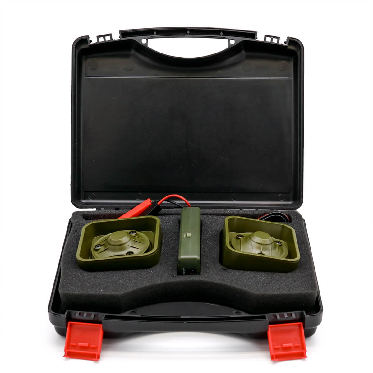 Электронный манок с двумя динамиками мощностью по 50 Вт. Прибор в пылевлагозащитном корпусе содержит встроенную память на 110 звуков, издаваемых различными животными и птицами. В манке предусмотрена установка пароля, таймера, повтора и дополнительной библиотеки звуков. Для подключения к компьютеру предусмотрен порт Mini-B USB. Питание производится от внешнего аккумулятора 12 В.